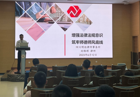 为进一步加强教师思想政治和师德师风建设,打造高素质专业化创新型教师队伍,6月12日,我院党总支在江安校区多学科交叉研究创新大楼A103报告厅开展师德师风建设专题学习。本次学习邀请四川明炬律师事务所专职律师刘锦辉作专题报告,学院副院长谢凌志及学院教职工代表30余人参会。本次学习由学院党员代表岑望来同志主持。