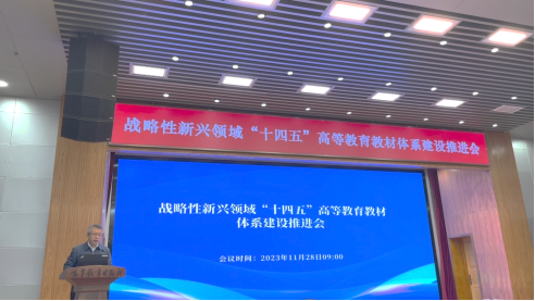 为全面贯彻党的二十大精神,加强高等学校战略性新兴领域卓越工程人才培养,推进战略性新兴领域高等教育专业教材体系建设,牵引带动相关领域核心课程、重点实践项目、高水平教学团队建设,部署推动战略性新兴领域“十四五”高等教育教材体系建设工作,2023年11月28日上午,教育部高等教育司在高等教育出版社(北京)通过线上线下结合的方式,召开战略性新兴领域“十四五”高等教育教材体系建设推进会。会议由教育部高等教育司理工处副处长郝杰主持。教育部高等教育司负责同志及相关处室同志,全国高等学校教学研究中心相关人员,入选战略性新兴领域“十四五”高等教育教材体系建设团队的牵头人、骨干团队成员、协调联络人员,有关出版单位负责同志及联络员,共计500余人线上线下参会。我院常务副院长江霞教授作为获批教育部战略性新兴领域“十四五”高等教育教材体系建设团队——未来产业(碳中和)领域的团队负责人参加并作专题汇报。