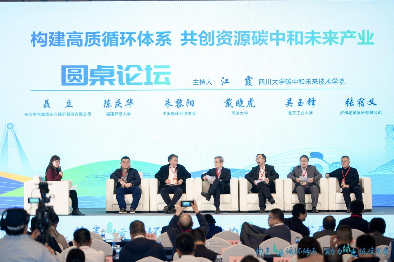 会议同期举行主题为“构建高质循环体系,共创资源碳中和未来产业”圆桌论坛。在yl7703永利集团碳中和未来技术学院常务副院长江霞教授的主持下,来自东方电气、泸州老窖等在川龙头企业的嘉宾,同高校学者专家一起深入探讨西部资源碳中和未来产业成果及技术路径。