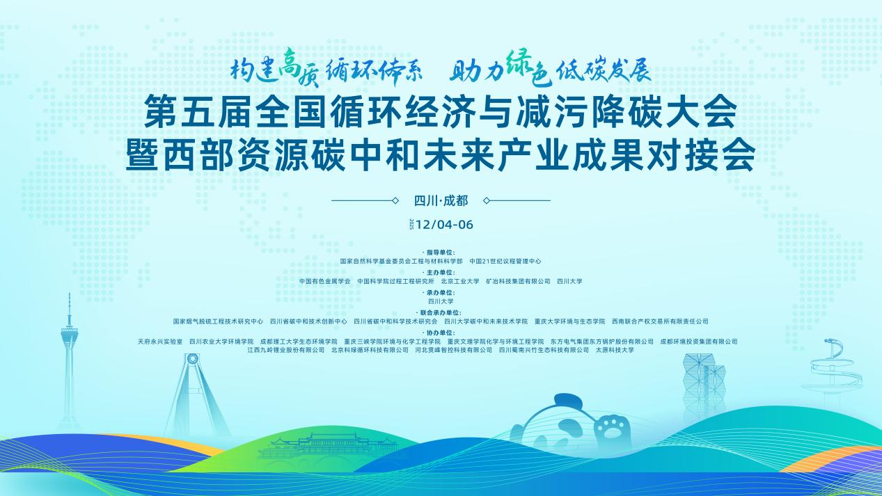 12月5-6日,由国家自然科学基金委员会工程与材料科学部、中国21世纪议程管理中心指导,yl7703永利集团等单位主办,yl7703永利集团碳中和未来技术学院、国家烟气脱硫工程技术研究中心等单位承办的“第五届全国循环经济与减污降碳大会暨西部资源碳中和未来产业成果对接会”在成都成功举行。中国21世纪议程管理中心副主任张永涛、生态环境部科技与财务司科技管理处处长马强等领导到会指导并致辞。