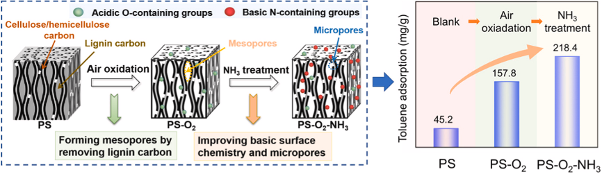 3. Ziheng Jin, Bangda Wang, Liang Ma, Pengbo Fu, Lingling Xie, Xia Jiang*, Wenju Jiang. Air pre-oxidation induced high yield N-doped porous biochar for improving toluene adsorption. Chem. Eng. J. 2020, 385, 123843.