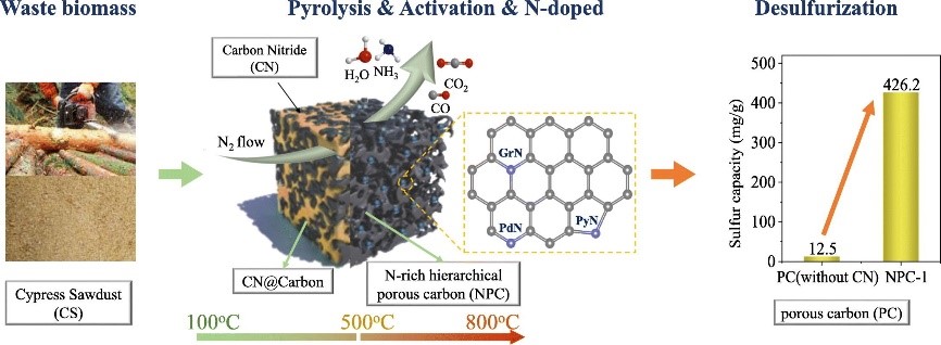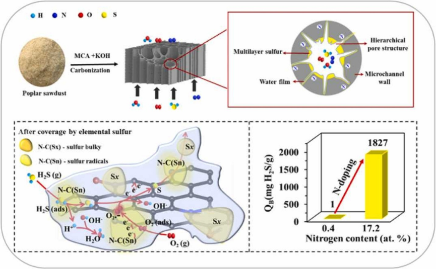 3. Jianping Wu, Wenhua Chen*, Lin Chen, Xia Jiang*. Super-high N-doping promoted formation of sulfur radicals for continuous catalytic oxidation of H2S over biomass derived activated carbon. J. Hazard. Mater. 2022, 424, 127648.